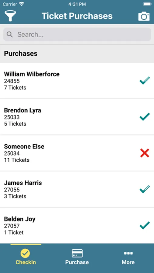 • Fast Searching - Once synced, all data is local so you can search for ticket-holders quickly by name.