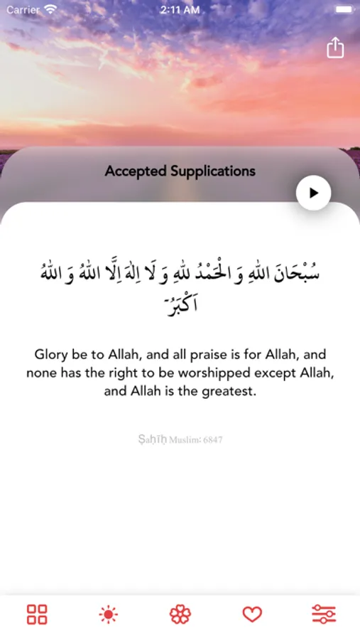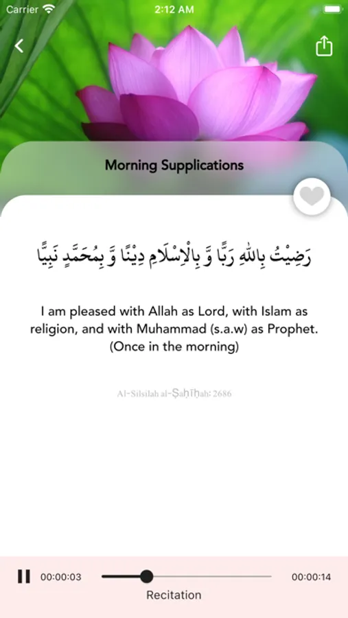 Mark your favorite duas with the heart icon for easy reference to your beloved duas in the favorites tab.