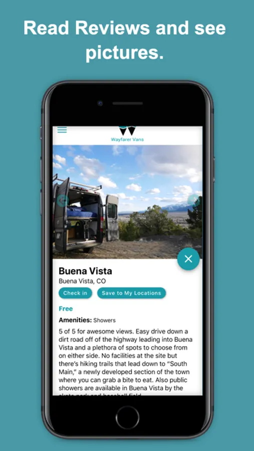 Wayfarer Vans owners can now find, rate, and review campsites all from a single application. Traveling through a new area and need a helping hand finding a place to stay for the night? The CAIRN app is your mobile guide. See sites that have been visited and vetted by users just like you. All sites feature images, descriptions, and directions. Travel with confidence with CAIRN by Wayfarer Vans. Upload your own destinations, add favorites, and help the community grow by checking in, reviewing, and rating the sites you visit.