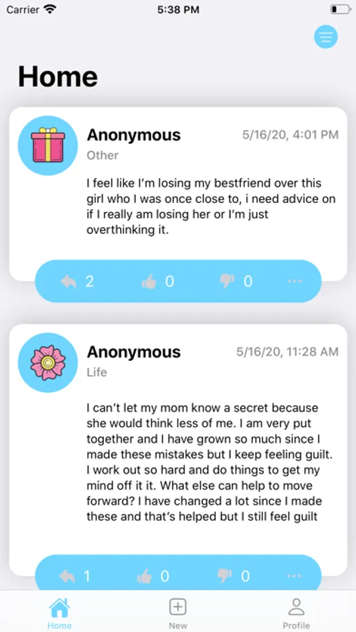 Honest is a social media app that lets users stay anonymous while seeking advice from others! Whether you're looking for personal advice, relationship advice, or just a listening ear - Honest offers a safe, secure space to share your thoughts and get opinions from the community. With Honest, anonymity is key so you can feel comfortable knowing that your identity is protected while receiving honest feedback. Download Honest now and start getting the help you need!