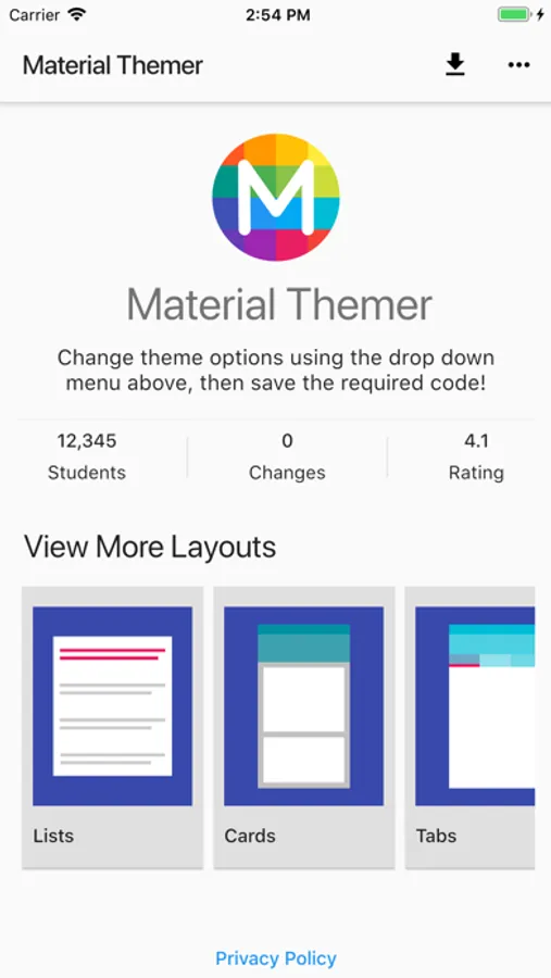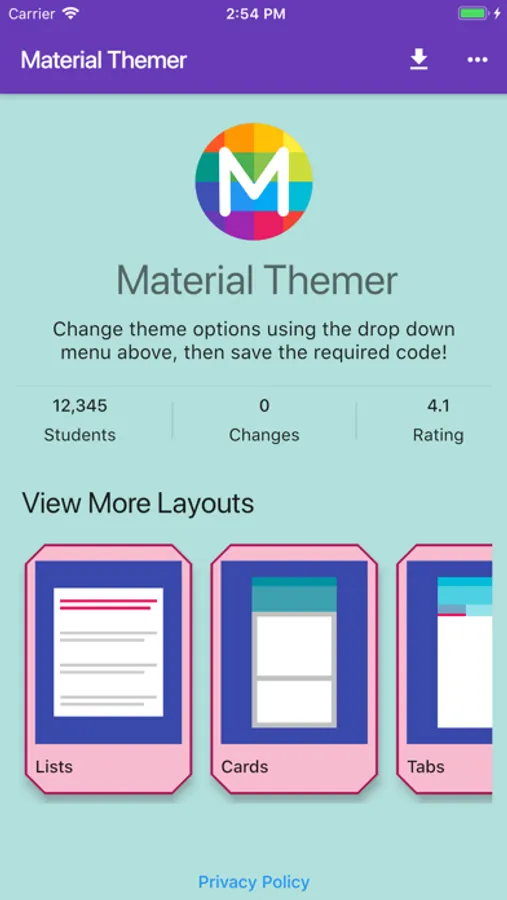 Material Themer takes the guesswork out of designing an app as a developer. You can see the choices you are making reflected in real-time without having to write any code or rebuild the app. In a few minutes you can tweak your design dozens of times and settle on a final product, and with a click of a button, generate all the code necessary for your design!