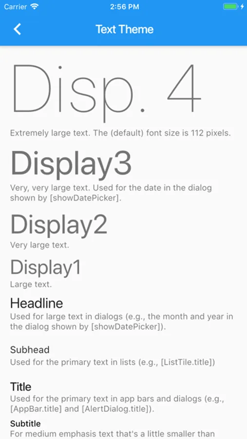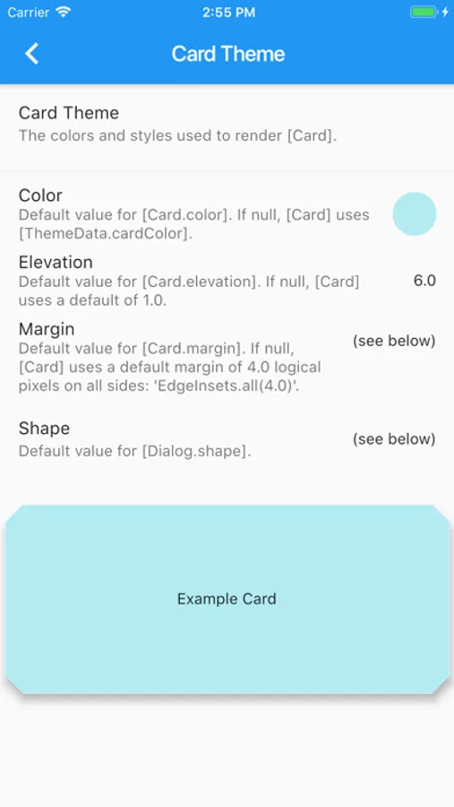 Using the Material Themer makes it easy to understand how the Flutter ThemeData components affect the overall look and feel of your app. Not only can you see the changes happening live, but each modifiable field is accompanied by the documentation taken directly from the Flutter SDK code.