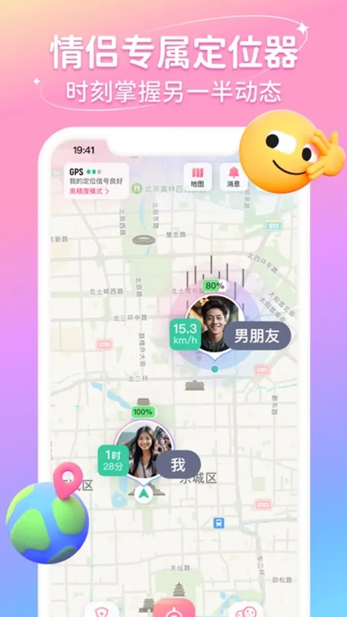 在地图上与另一半聊天发表情,分享和守护你们的一切,让彼此更亲密