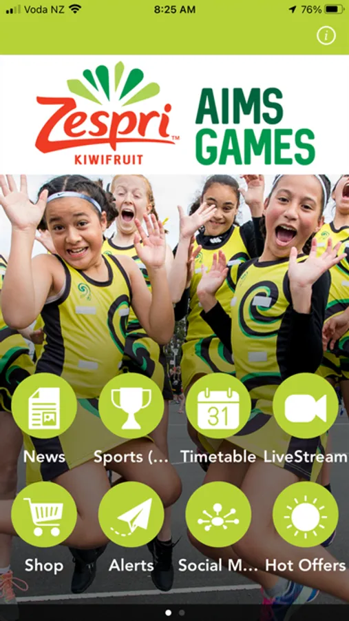 The official app for the Zespri Kiwifruit Aims Games 2023. The app will contain all the information, draws/results, scores, updates, news, locations and great offers for the 2022 Zespri Kiwifruit Aims Games. The Zespri Kiwifruit Games is held in September of each year in Mount Maunganui, Bay of Plenty, NZ