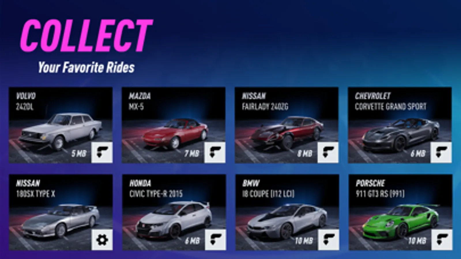 Open the app to enter your Showroom, where all of your favorite cars will be on display. These are the cream of the crop, the customs you’ve really put your heart and soul into. Change things up when you add new designs or move a classic to the Workshop for some high-end tinkering.