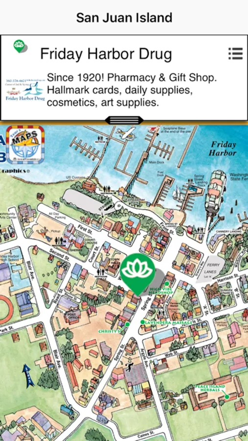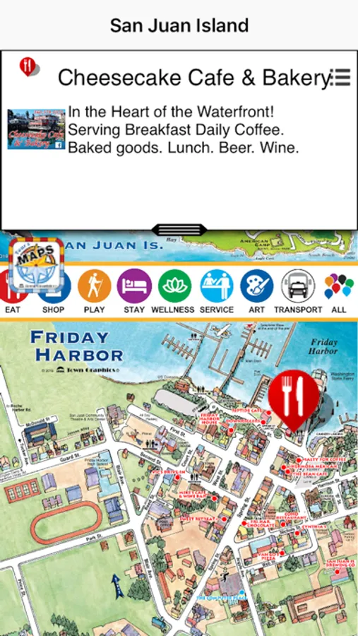 Famous Town Graphics Discovery maps of the San Juan Island, Roche Harbor and Friday Harbor,
