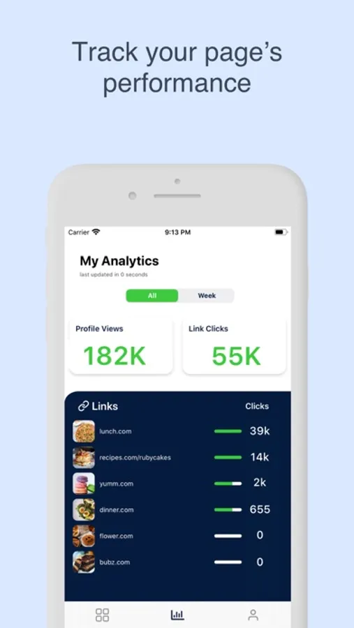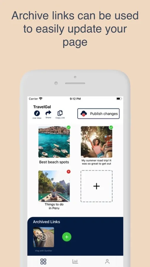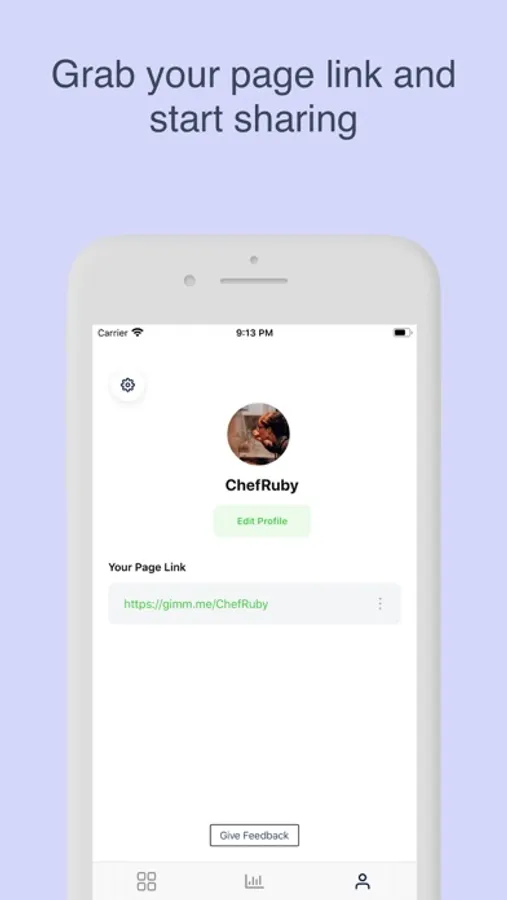 Begin by choosing a photo from your camera roll and the URL to the link you want to share. Once you've published your page, simply copy and paste your personal gimm.me link to your social bio or post. Once your followers begin to click your link, you'll begin to see analytics such as your profile views and link click counts increasing!