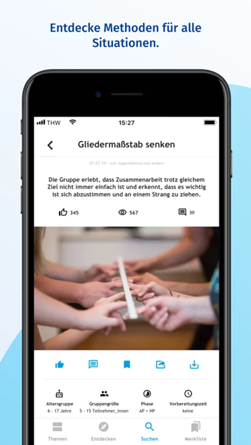 Für Jugendleiter_innen bietet JApp eine umfangreiche Datenbank mit detailliert erklärten Methoden. Zu verschiedenen Themen können Gruppenstunden damit innerhalb weniger Klicks geplant und abgespeichert werden. Lass euch von den vielen Optionen inspirieren und gestaltet abwechslungsreiche Jugenddienste!