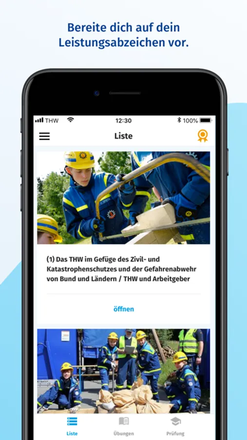 Junghelfer_innen können mit JApp theoretische Fragen rund um das THW und die THW-Jugend beantworten. Sie können sich damit perfekt auf das bevorstehende Leistungsabzeichen vorbereiten und damit nicht nur lernen, sondern ihr Wissen auch in unserer Prüfungssimulation auf den Prüfstand stellen.