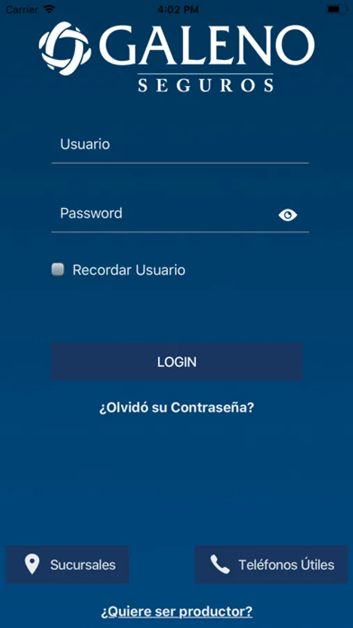 Los servicios y funcionalidades de esta app, podrán ser utilizadas a todas las personas que tengan un usuario activo del portal de Productores con Galeno Seguros.