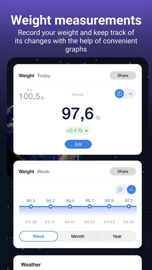 1. (NEW!) Weight measurements – record your weight and keep track of its changes with the help of convenient graphs.