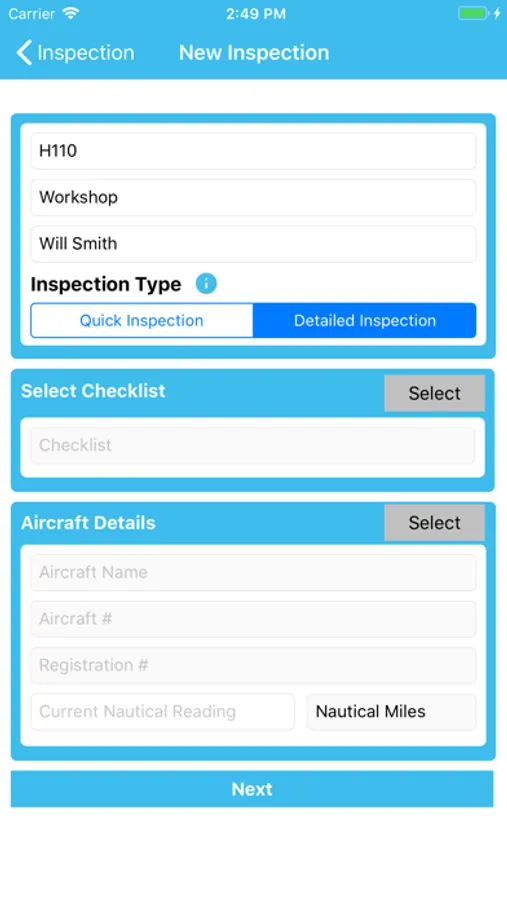 4. Start your first Inspection – may be 100 hours