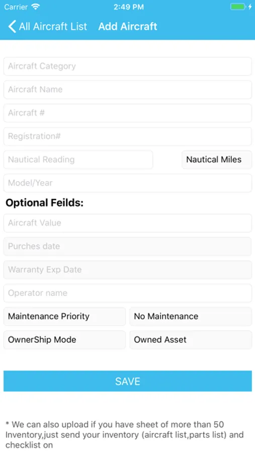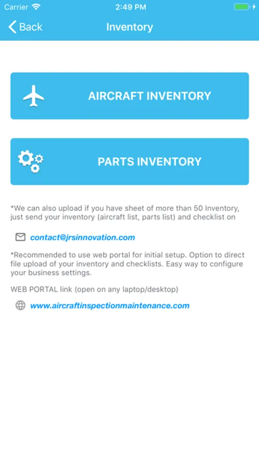 2. Aircraft information in Inventory