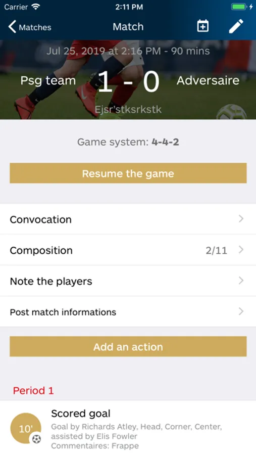 - Game: The entry of game events from the sidelines is a true added value. Cards, goals, assists, injuries, fouls.... you will not miss any other action of your games! Each event entered fuels your statistics and allows you to procede to a thorough analysis of your performances.