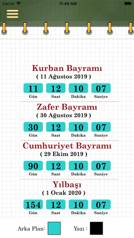 Uygulamamızda yer alan "Tatiller" menüsü ile de ülkemizde var olan Resmi Tatil günlerine ne kadar zaman kaldığını görebilirsiniz.