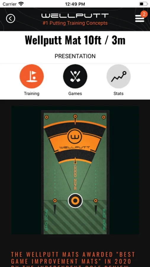 The Wellputt App provides more than 50 exercises on 3 different courses for your putting training mat, developed by Coach Cameron McCormick, Jordan Spieth's coach. You'll improve your putting skills in a playful way. Train your accuracy and speed control, follow your stats, challenge your friends and play with your family!