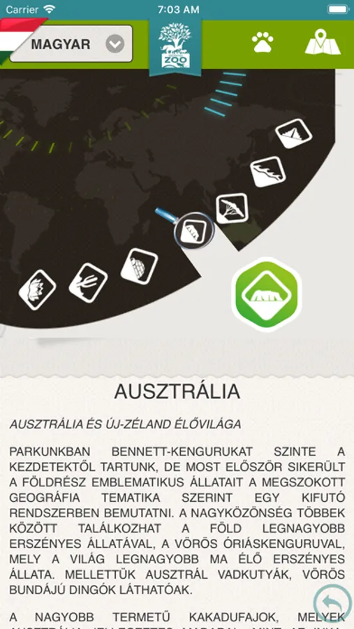 Az alkalmazás a Nyíregyházi Sóstó Zoo állatpark területén található több mint 200 állatfajhoz segít a legrövidebb útvonalon keresztül eljutni. Az útvonaltervező képes az útvonalat több kiválasztott fajhoz úgy összeállítani, hogy a bejárás a legoptimálisabb módon történhessen az aktuális helyzetünkhöz képest.