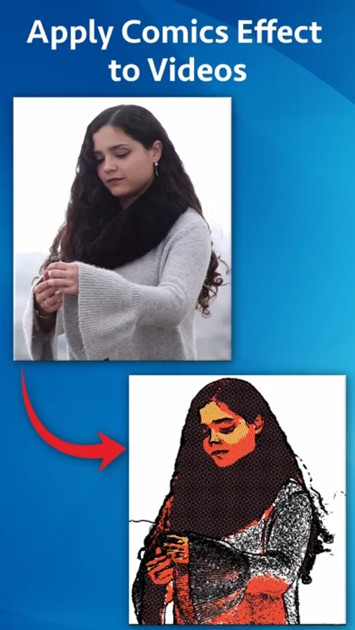 ** Comics Effect : Convert an entire video to look like a comics. In this effect all people and objects in the video are converted to look like Comics. This creates an amazing effect.