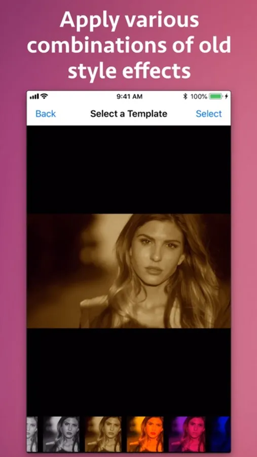 ** Old Style effects : The application comes with a combination of more than 5 different black and white effects which will make the video look like it was recorded in old times like in 80's or 90's.