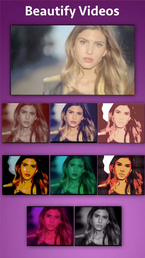 Convert a video to look like a Comics, Pixelate an area of the video to protect privacy, Convert a daylight Video to Night mode, Convert a video to Black and White, Make a video look like a Camera Negative and apply more than 30 effects & filters to beautify the videos.
