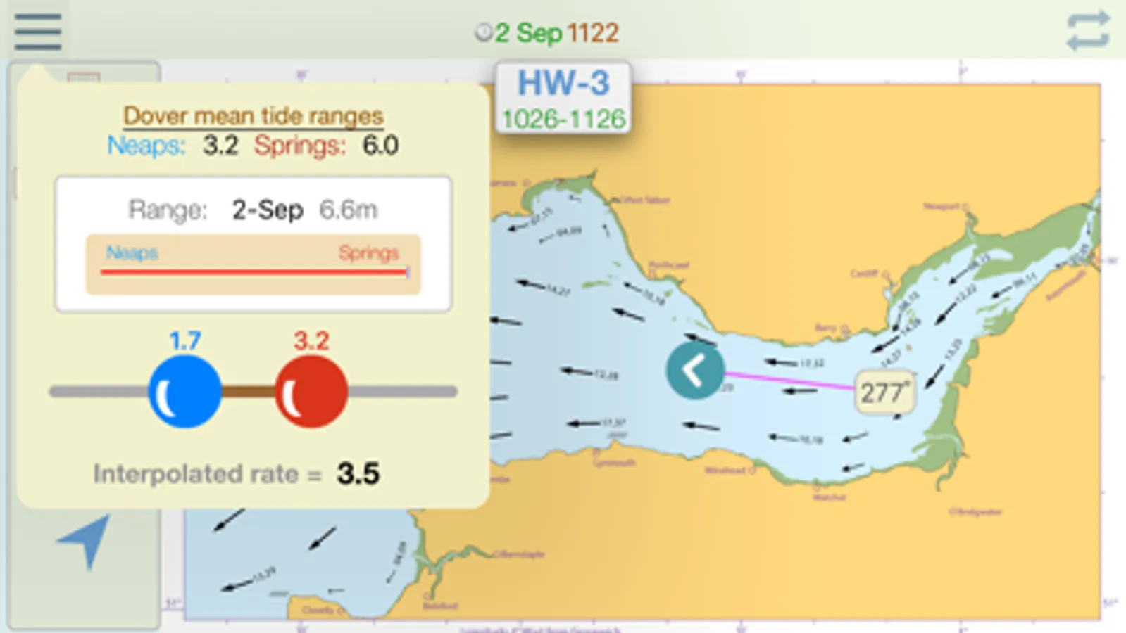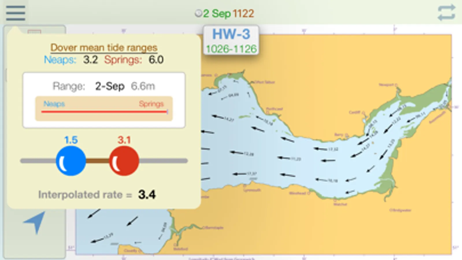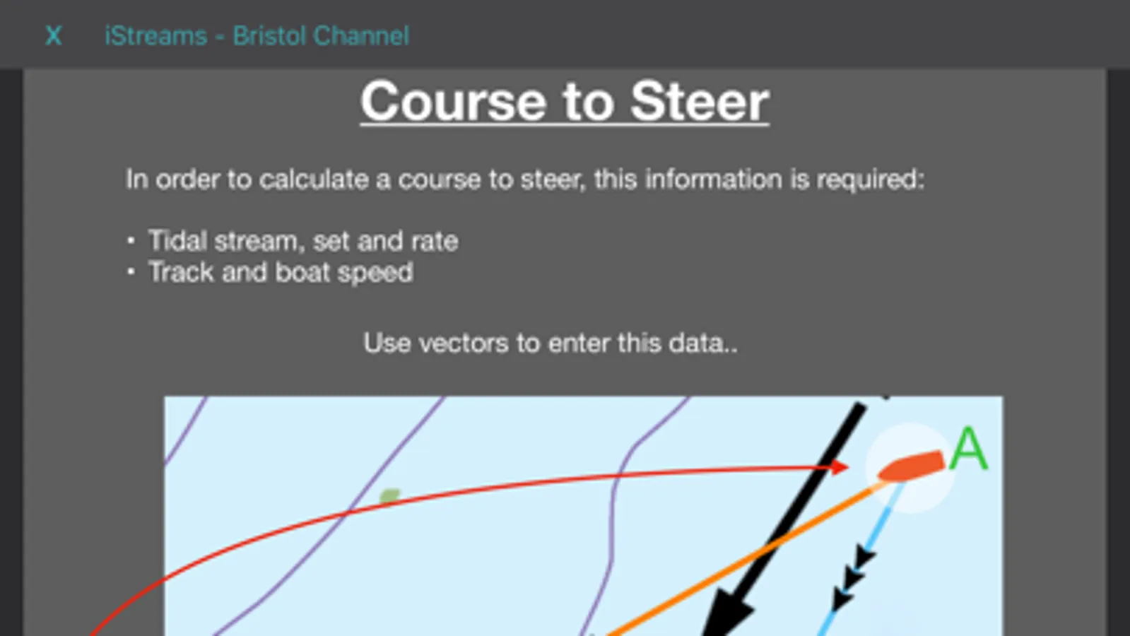 iStreams displays the valid hourly Bristol Channel tidal stream atlas for the current real time, in reference to the time of high water at Dover... a smart app, fully functional offline. With tools to measure tide set and interpolated rate.