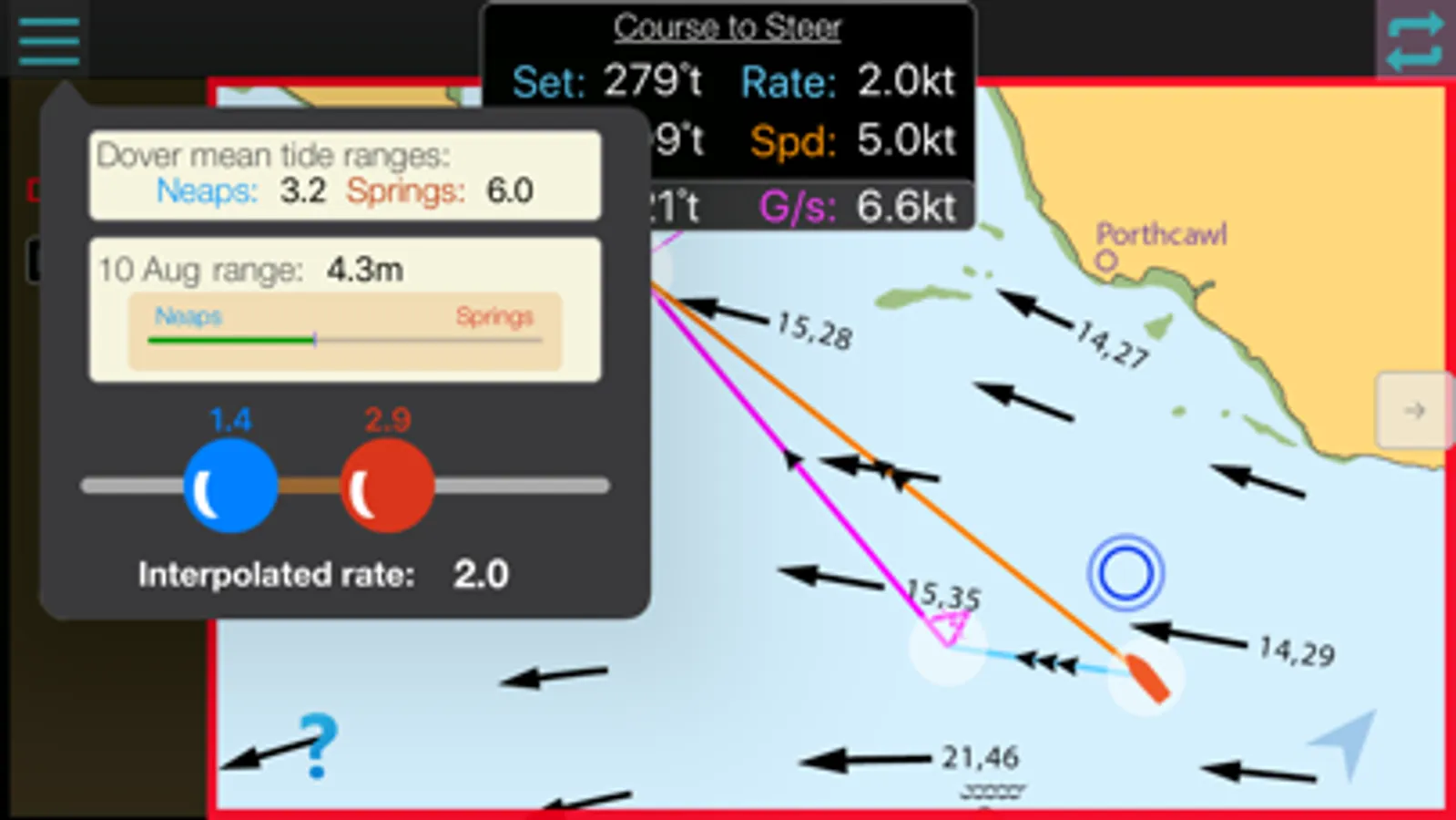 Select the 'Set' tool to measure the precise true course of any tidal stream arrow. (in-app purchase)