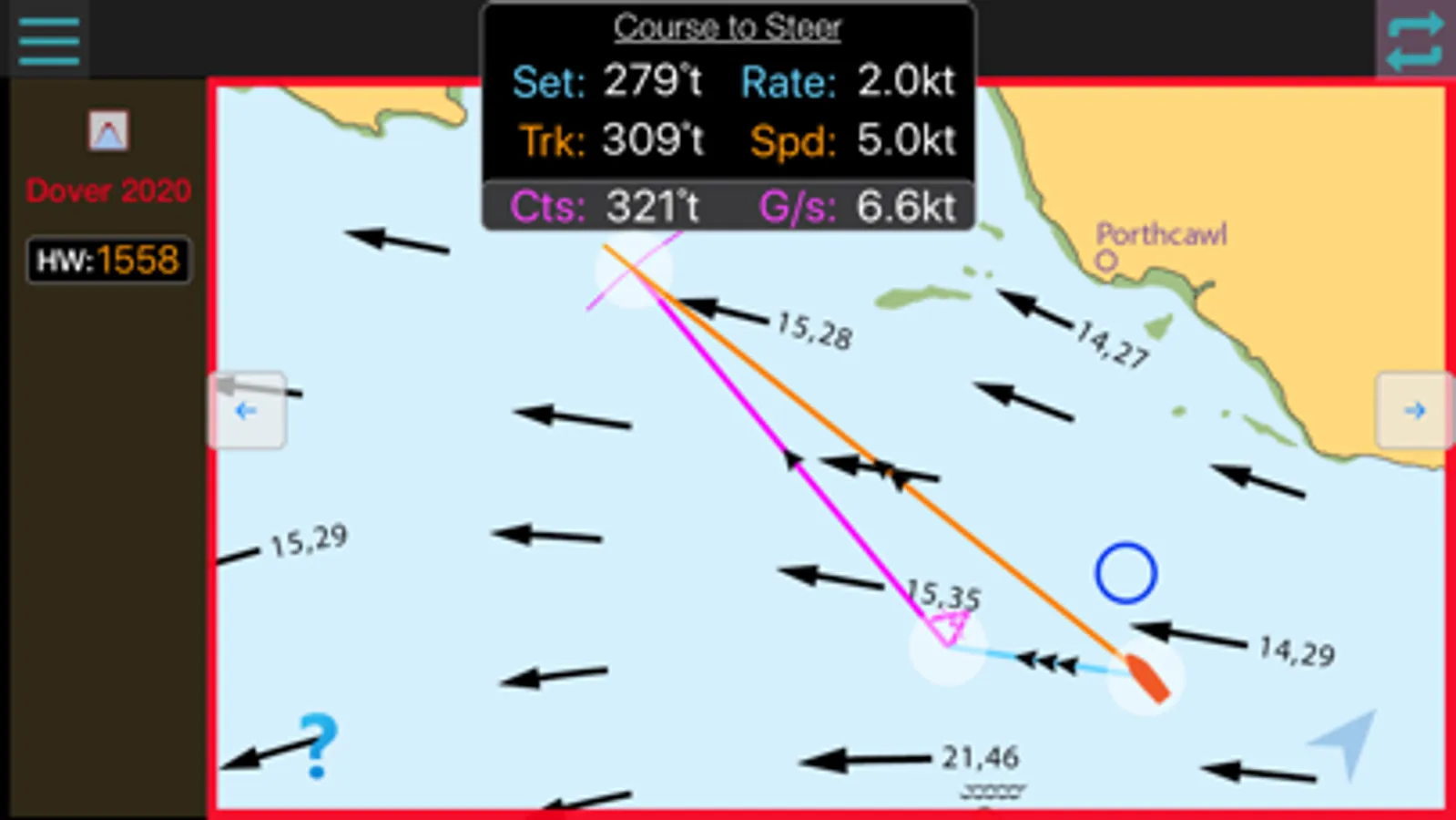 Select the 'CTS' tool to calculate a Course to Steer. (in-app purchase)