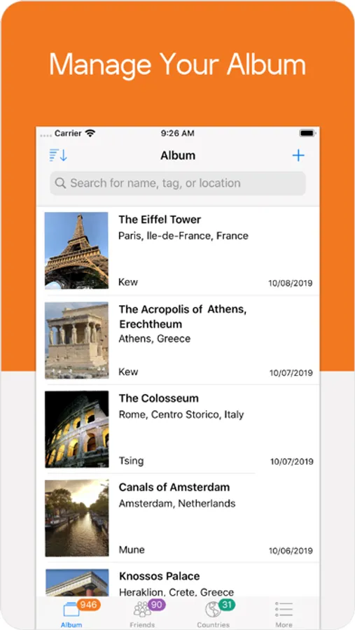 • Organize your gifts with custom tags, like ‘graffiti’, ‘fountains’, ‘libraries’ or anything else