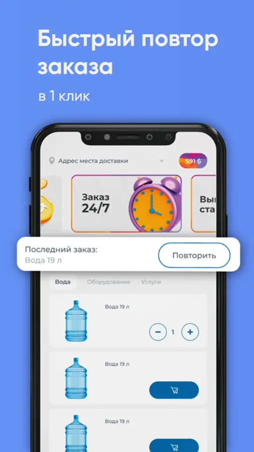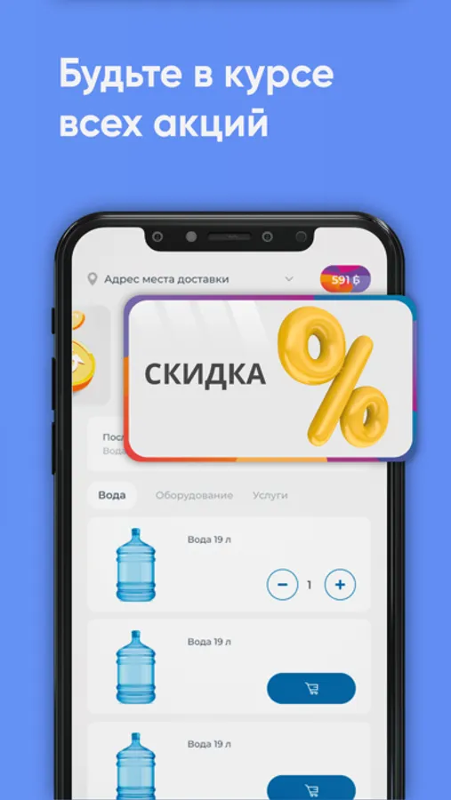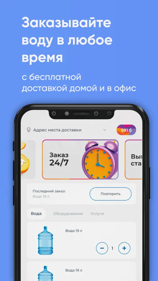 Скачайте бесплатное приложение на телефон и заказывайте чистую воду в удобное время!