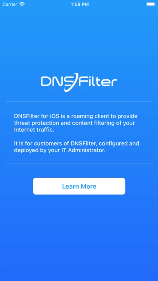 The DNSFilter roaming client is an endpoint security solution for organization-owned iOS devices running in supervised mode. It offers the power of DNSFilter’s global threat protection and content filtering protection to your iOS device. When running this app, DNSFilter is able to secure your DNS traffic without requiring a VPN, on any cellular or wi-fi network, regardless of where in the world you are located.