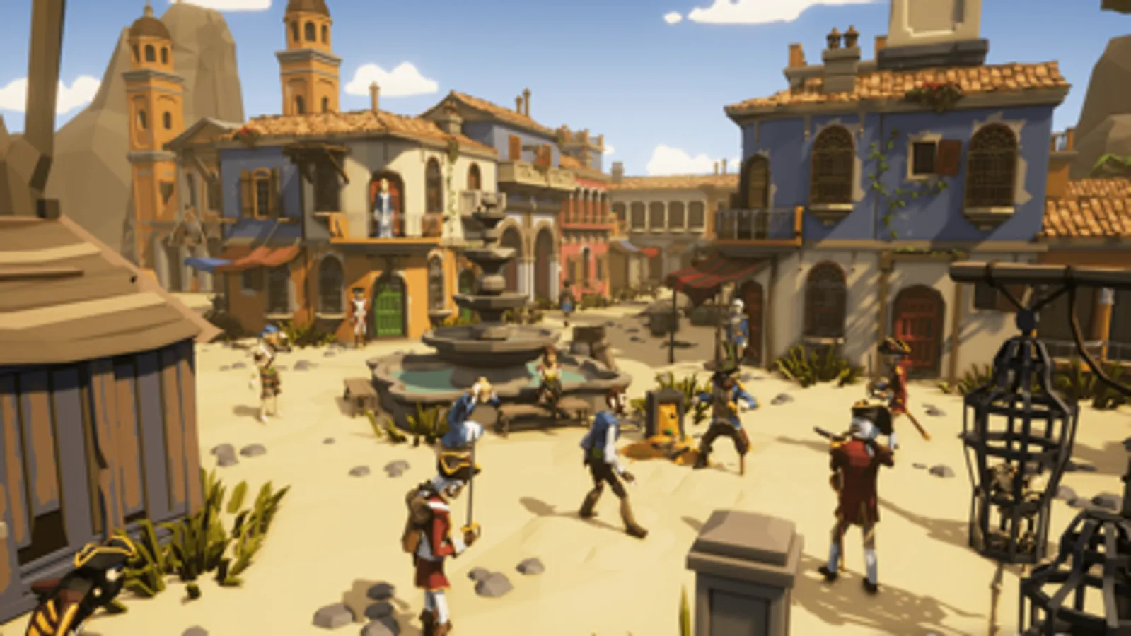 A player travels and explores an open world through a pirate ship and assumes different roles, such as orientation, anchors, navigation and cannon firing.