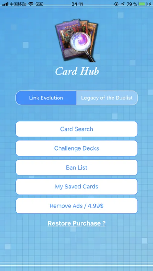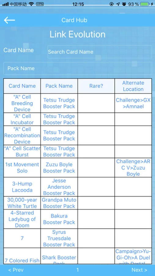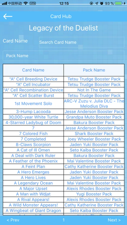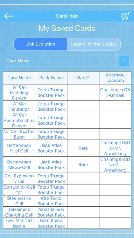 The Card Hub allows you to quickly search for card locations in both Link Evolution and Legacy of the Duelist. You can quickly find the following information: