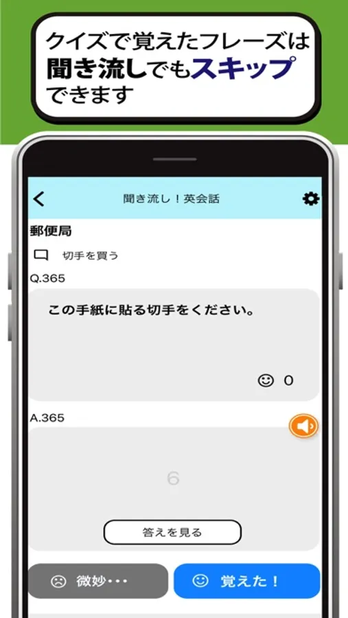 クイズで覚えたフレーズは、聞き流しでもスキップできるので効率的です!