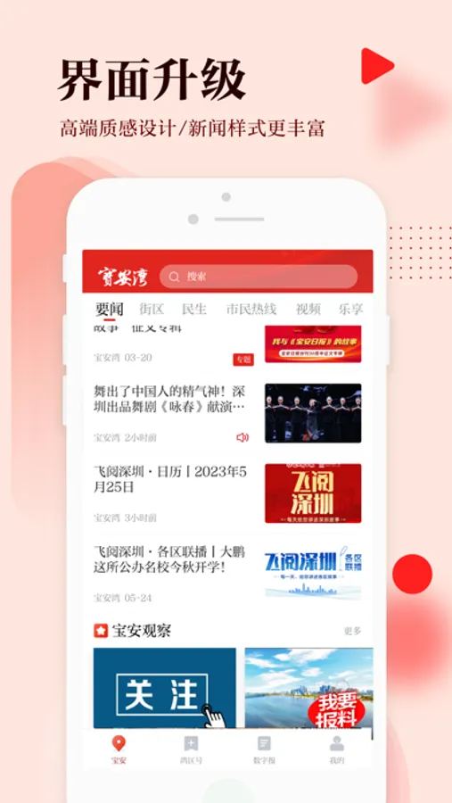 宝安湾APP隶属深圳市宝安日报社。1993年1月1日,原宝安县撤县设区,在新的社会经济发展形势下,宝安日报应运而生。《宝安日报》作为深圳报业集团子报,承担宝安区、龙华区、光明区三区机关报职能,兼具社区报特点,是宝安区、龙华区、光明区党委、政府指导全区工作的重要舆论阵地。目前,宝安日报社正致力于打造中国优质的县区级融媒体,守正出新,砥砺奋进,明确了“讲好大宝安故事,发出大宝安声音,展示大宝安风貌,唱响大宝安自信”的总基调,坚持正能量、高格调、鲜活趣,深受广大市民的喜爱。