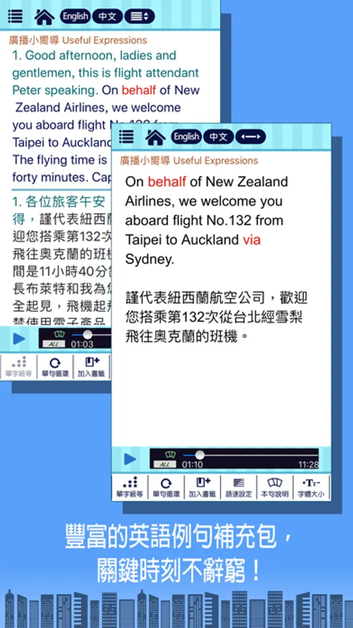 1.閱聽同步:聲音與文字同步,讓您聽得清晰,學得真確。