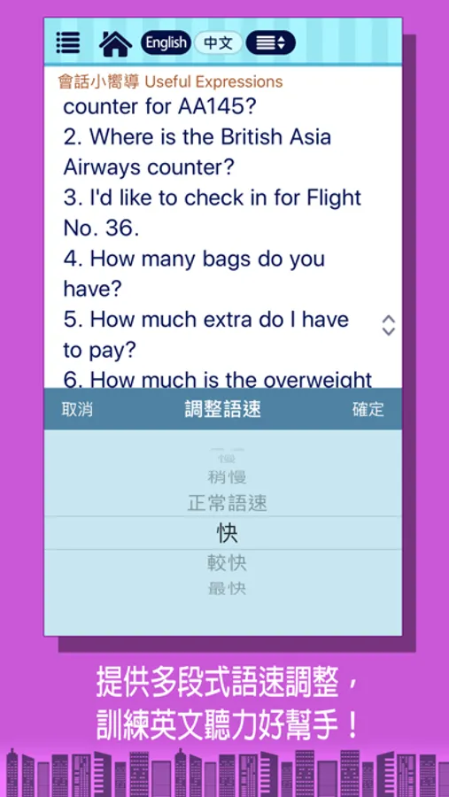 9.中英對照:可設定中文或英文顯示,以訓練閱讀與理解能力。