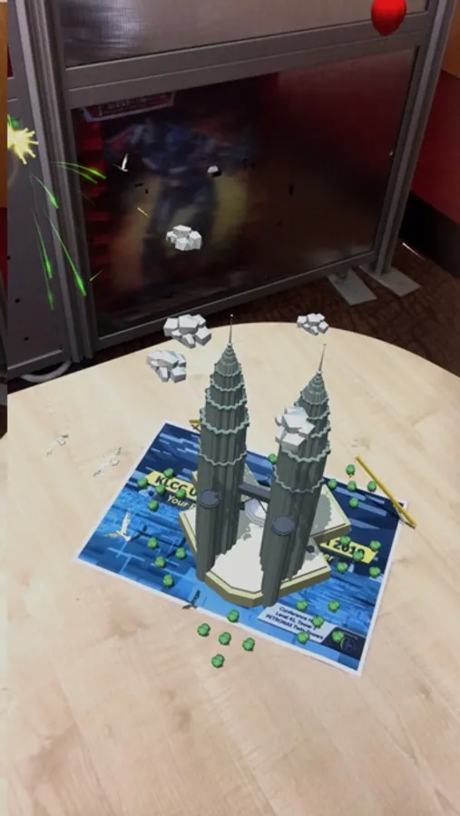 KLCCUH Augmented Reality (KLCCUH AR) is developed to provide an interactive, reality-based display environment; a glimpse of PETRONAS Twin Towers, which is also the 88-storey iconic building with its pristine beauty even after two decades. Pair the App with KLCCUH FM Forum Gift Card and watch as PETRONAS Twin Towers leap out from the Gift Card in Augmented Reality.