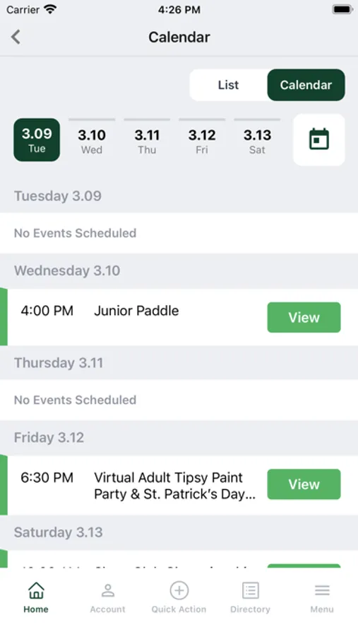 - View calendar of events and sign up