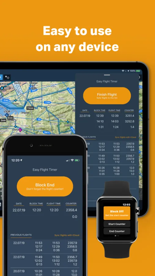 Easy Flight Timer lets you easily track your flight times with just one button. Focus on flying while you are in the cockpit, not on writing flight times. The app works with the iPhone, on your iPad together with your favorite navigation app or - what I like most - with the apple watch.