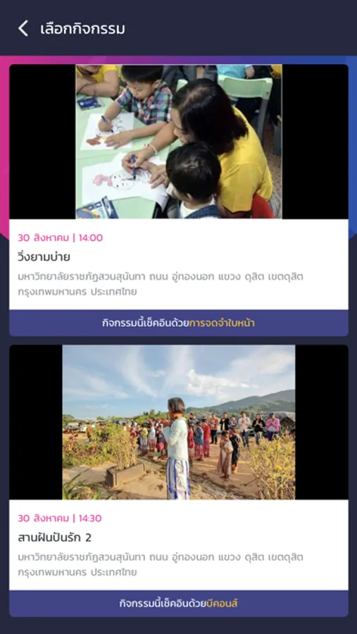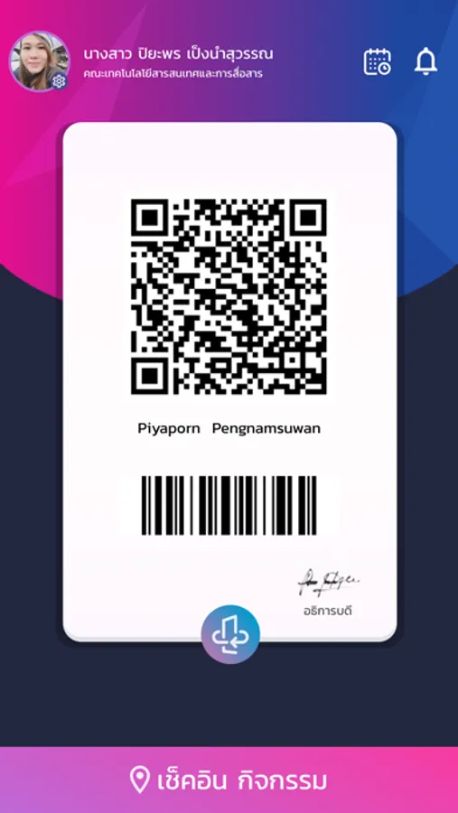 แอพพลิเคชั่นสำหรับลงชื่อผู้เข้าร่วมกิจกรรม โดยยืนยันตัวตนการเข้าร่วมผ่านอุปกรณ์บีคอนส์หรือถ่ายรูปใบหน้าเพื่อเข้าร่วมกิจกรรมที่อยู่ภายในบริเวณที่จัดงาน โดยสามารถตรวจสอบกิจกรรมที่จัดขึ้นทั้งหมดเมื่อผู้ใช้งานเข้าไปอยู่บริเวณกิจกรรม สามารถดูรายละเอียด กำหนดการ และเอกสารของกิจกรรมที่เข้าร่วมได้