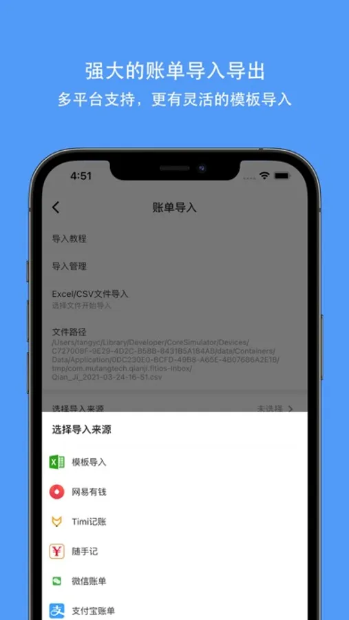【数据导入】 支持了丰富的导入功能,可以顺利将其他平台账单导入。