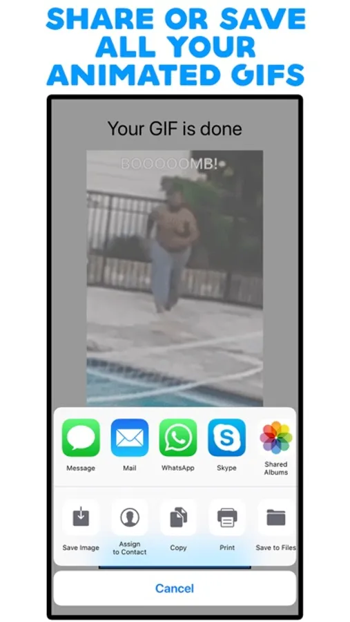 Using GIF Maker Animation you can easily create a fun GIF image from videos and images and share the GIF created with all your friends by FACEBOOK, TWITTER, INSTAGRAM, WHATSAPP, MESSENGER and many other applications.