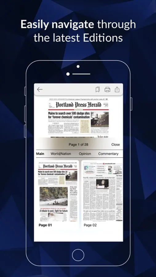 The Portland Press Herald/Maine Sunday Telegram is the daily newspaper serving the Portland area Monday through Saturday and the state of Maine each Sunday. The Portland Press Herald/Maine Sunday Telegram ePaper is an exact replica of the print edition, available on your mobile device each morning.The ePaper is designed to highlight the best aspects of the print experience, with the convenience of a digital one. Flip pages, zoom-in on an article or photo, save, print and share articles, or catch up on news you may have missed in our archives. Happy reading.