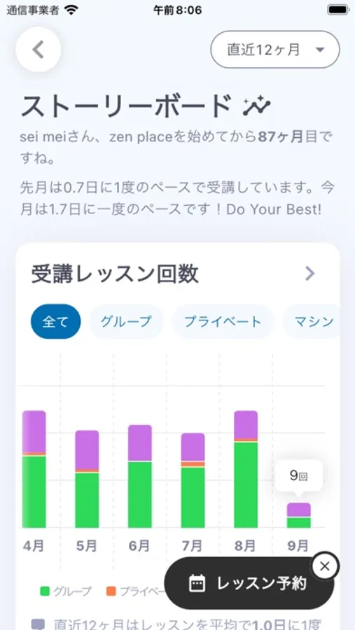ストーリーボード機能で日々のレッスンの振り返りや、受講したWEのランキング、受講頻度などを確認することができます。