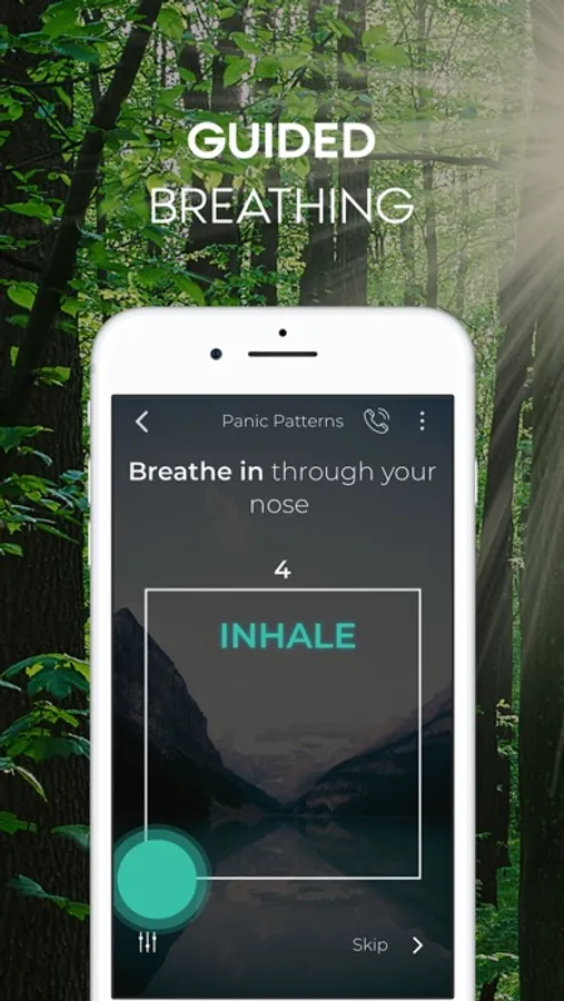 This section is designed to assist you in regaining control of your breath during moments of high anxiety or panic. Follow the pattern on-screen and you will be guided through common breathing sequences that are shown to help calm and regulate breathing. The pattern repeats 4 times. One pattern is available to all users and subscribers can customize their breath sequence.