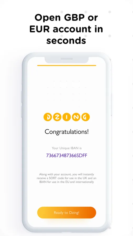 Dzing is a multi-currency financial mobile service, «banking without a bank» for a global lifestyle. To get a UK account, all you need is a smartphone and a couple of minutes. Download the app, complete a short registration, open a GBP or EUR account within one minute, top-up your new bank account quickly and easily. You can order a Mastercard debit card delivered right to your doorstep, and get a virtual card to use both online and offline.