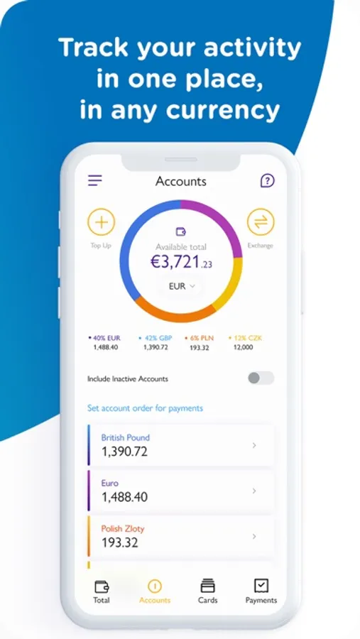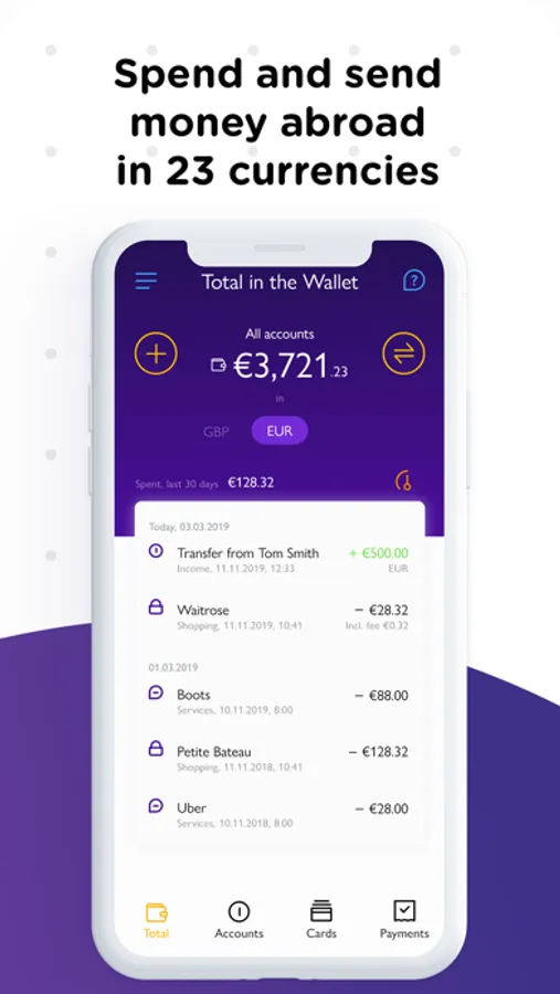 – Get a snapshot of your total balance in different currencies across all of your current accounts.