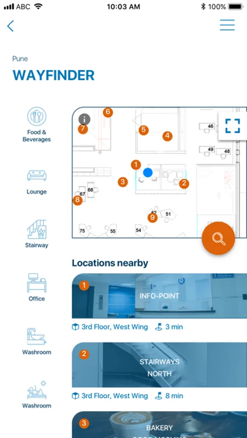Discover and easily access desks, rooms, food and beverage facilities & various amenities on the office premises with step-by-step navigation