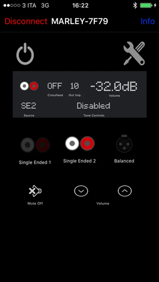 Thanks to this simple interface you can control Marley MKII headphones amplifier M2Tech.