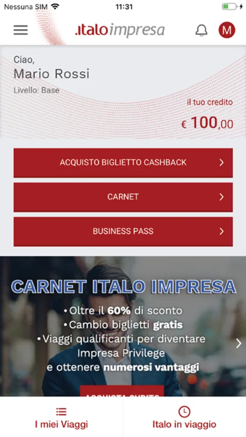 Se sei un cliente iscritto ad Italo Impresa, hai accesso alle seguenti funzionalità: